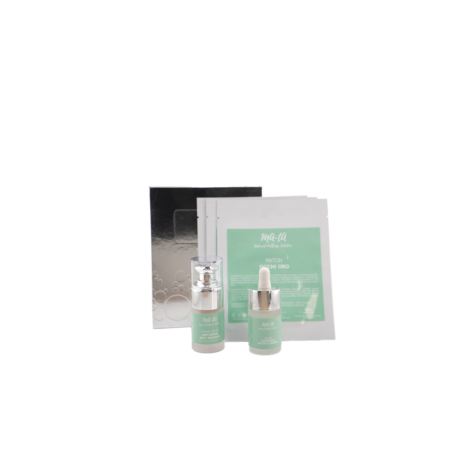 Il Kit Eyes Program Ma-Ta è un trattamento completo studiato per prendersi cura della zona perioculare, una delle aree più delicate e soggette ai segni del tempo. Il rituale combina un’azione liftante immediata, un effetto filler levigante e un trattamento intensivo anti-borse e anti-occhiaie, per uno sguardo visibilmente più disteso, luminoso e tonico.