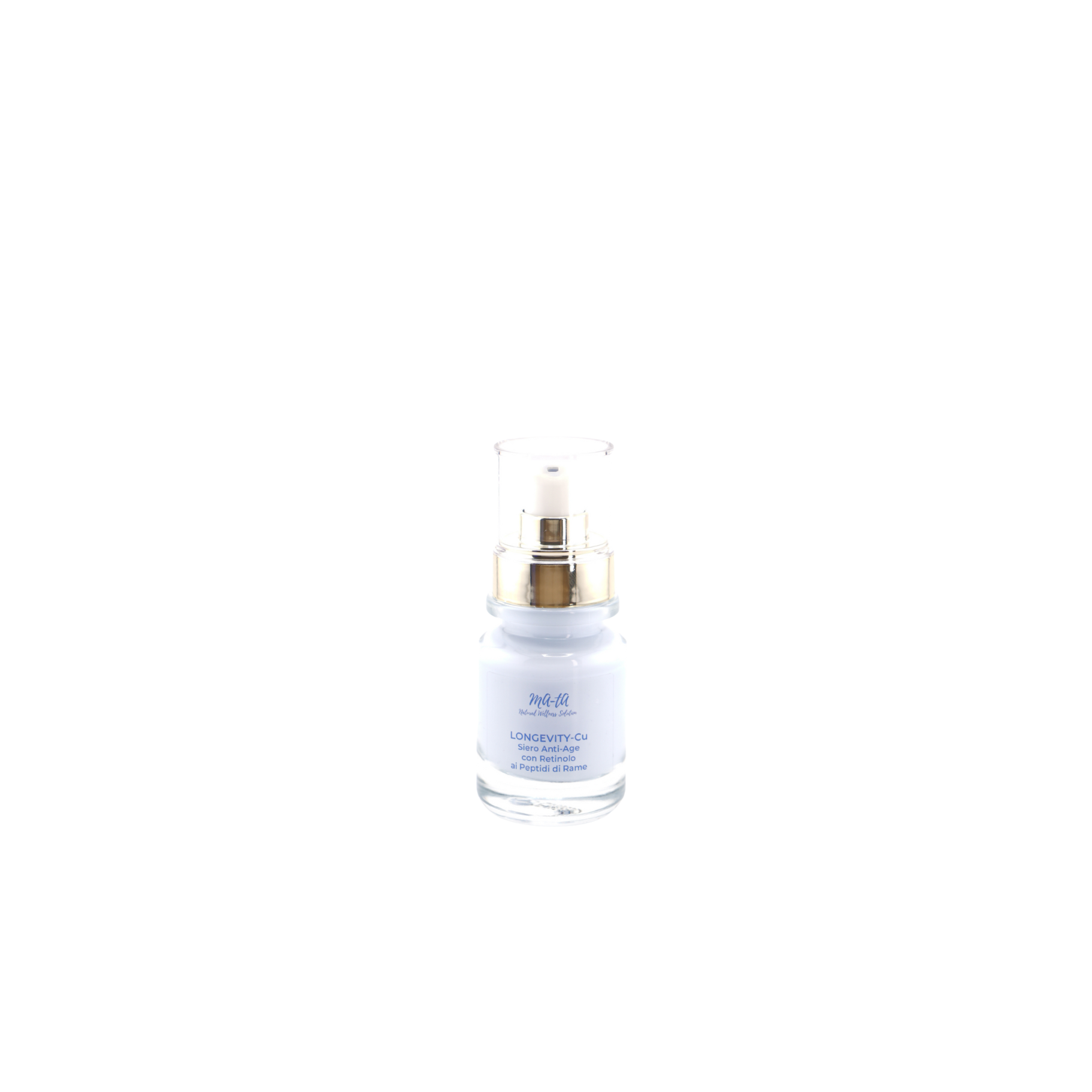 Il retinolo è ampiamente riconosciuto come una delle sostanze più efficaci nel contrastare l'invecchiamento cutaneo, stimola i fibroblasti a sintetizzare fibre di collagene, aumentandone l'attività e il numero, il che migliora significativamente l'elasticità della pelle e favorisce la rimozione delle fibre di elastina degradate. Quando applicato localmente, il retinolo interagisce con specifici recettori nucleari allentando le connessioni tra le cellule epidermiche, facilitando la riduzione della cheratosi e accelerando il rinnovamento cellulare nell'epidermide e nello strato corneo. In particolare, i retinoidi sono efficaci nel ridurre la pigmentazione, contribuendo a una distribuzione più uniforme della melanina. A causa della sua natura idrofobica e della sua suscettibilità alla degradazione, il retinolo libero non raggiunge efficacemente le aree cutanee target. L'incapsulamento protegge il principio attivo dalla degradazione, ne prolunga l'effetto e ne migliora la permeazione negli strati cutanei più profondi, dove può agire in modo più efficace. Nel sito d'azione, il retinolo viene rilasciato in modo controllato tramite scissione enzimatica ottenendo una maggiore efficacia e migliore tollerabilità, soprattutto per le pelli sensibili. I peptidi di rame stimolano la produzione di collagene ed elastina, promuovono la rigenerazione cellulare e agiscono come antiossidanti per migliorare l'elasticità, ridurre le rughe e rafforzare la barriera cutanea. Questo meraviglioso pool di attivi innovativi lavora sinergicamente per preservare la salute e la vitalità della pelle del viso nel tempo.